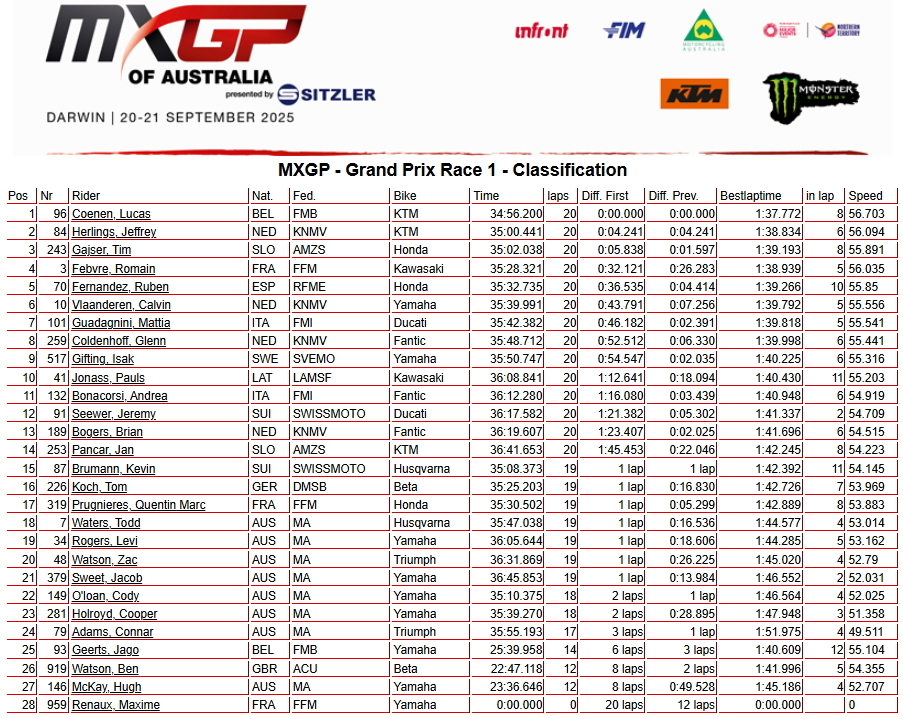 Сегодня на трассе на трассе Hidden Valley Raceway в Дарвине прошли основные заезды заключительного, 20-го этапа Чемпионата мира по мотокроссу 2025 года - Гран-при Австралии.