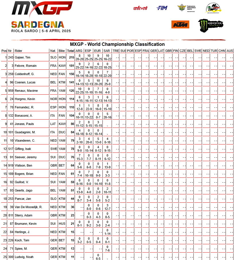 Сегодня на трассе в Риола-Сардо (Италия) прошли основные заезды 4-го этапа Чемпионата мира по мотокроссу 2025 года - Гран-при Сардинии.
