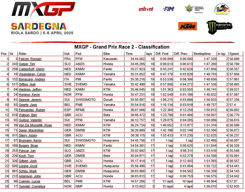 Результаты Гран-при Сардинии – класс МХ2: