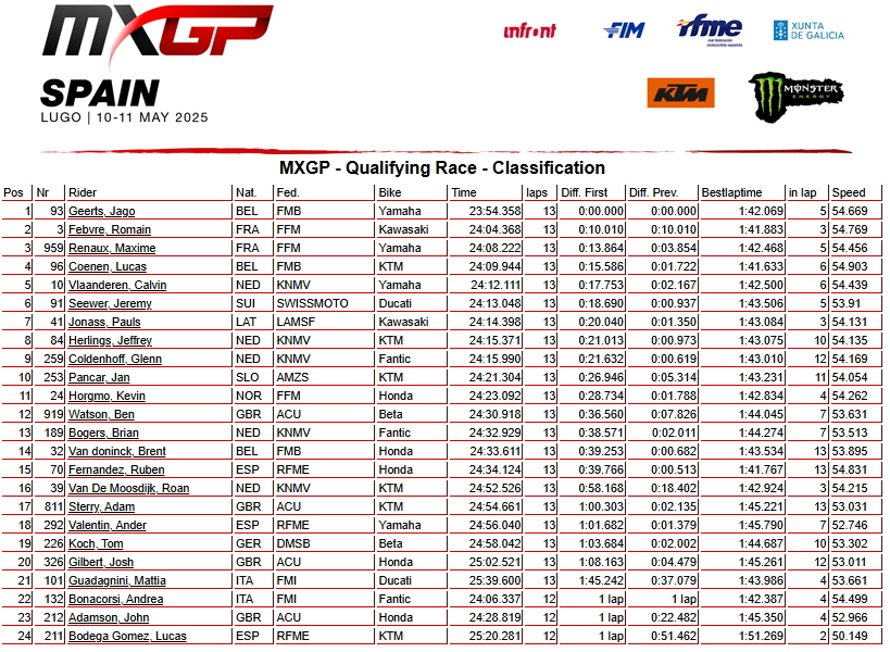 Сегодня на трассе в Луго прошли квалификационные заезды 8-го этапа Чемпионата мира по мотокроссу 2025 года - Гран-при Испании.