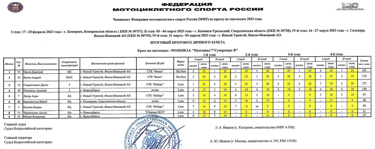В минувшие выходные в г. Новый Уренгой, Ямало-Ненецкий АО состоялись заключительный, 4-й этап Чемпионата и Первенства России/Чемпионата МФР по кроссу на снегоходах, заключительный, 5-й этап Чемпионата России/Чемпионата МФР по сноубайк-кроссу, а также региональные соревнования «Первенство Ямало-Ненецкого Федерального округа по кроссу на снегоходах сезона 2023 года.