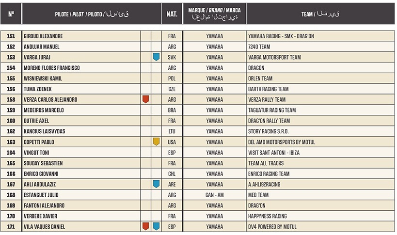 Полный список участников ралли Дакар 2023 года и в зачетах мотоциклы (Мото Rally GP, Rally 2, Malle Motul) и квадроциклы.