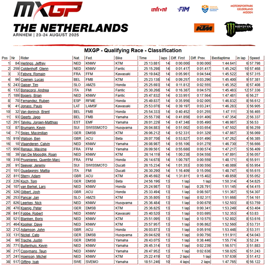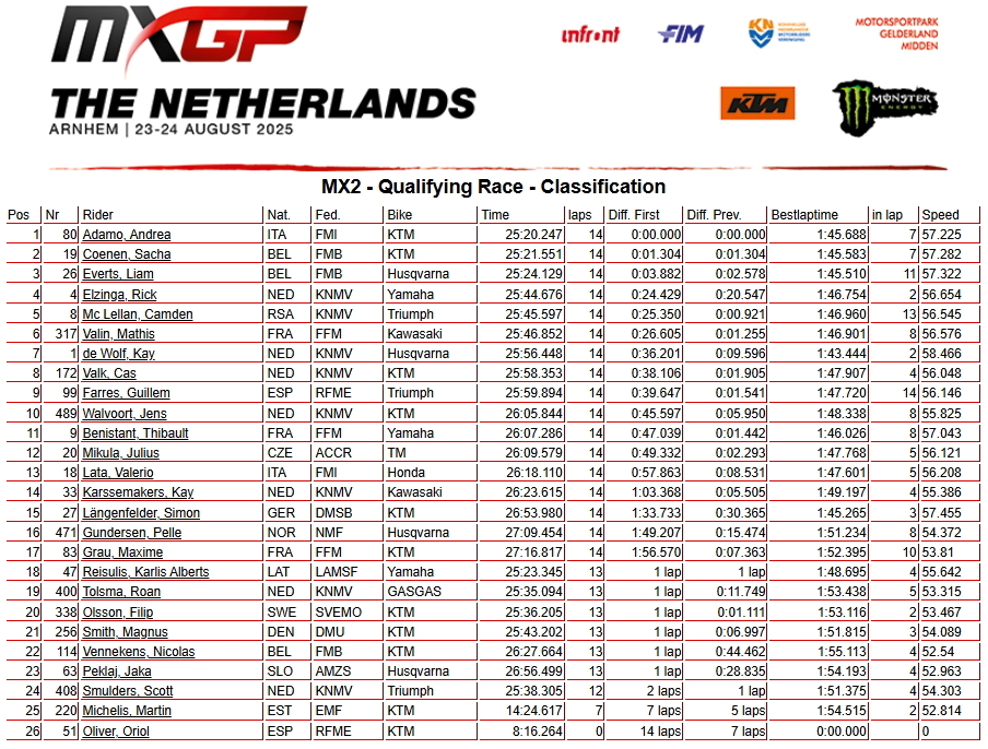 Сегодня на трассе в Арнем прошли квалификационные заезды 17-го этапа Чемпионата мира по мотокроссу 2025 года - Гран-при Нидерландов.