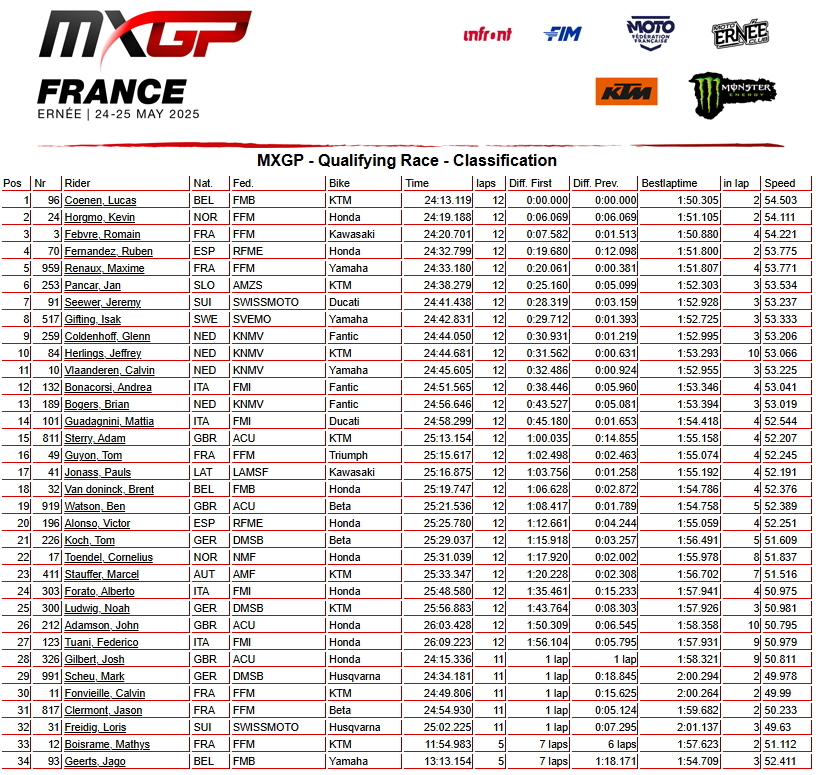 Сегодня, 24 мая на трассе в Эрни прошли квалификационные заезды 9-го этапа Чемпионата мира по мотокроссу 2025 года - Гран-при Франции.