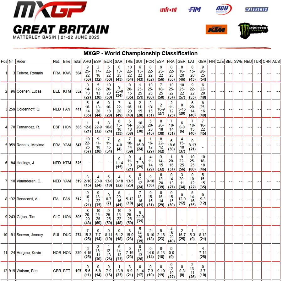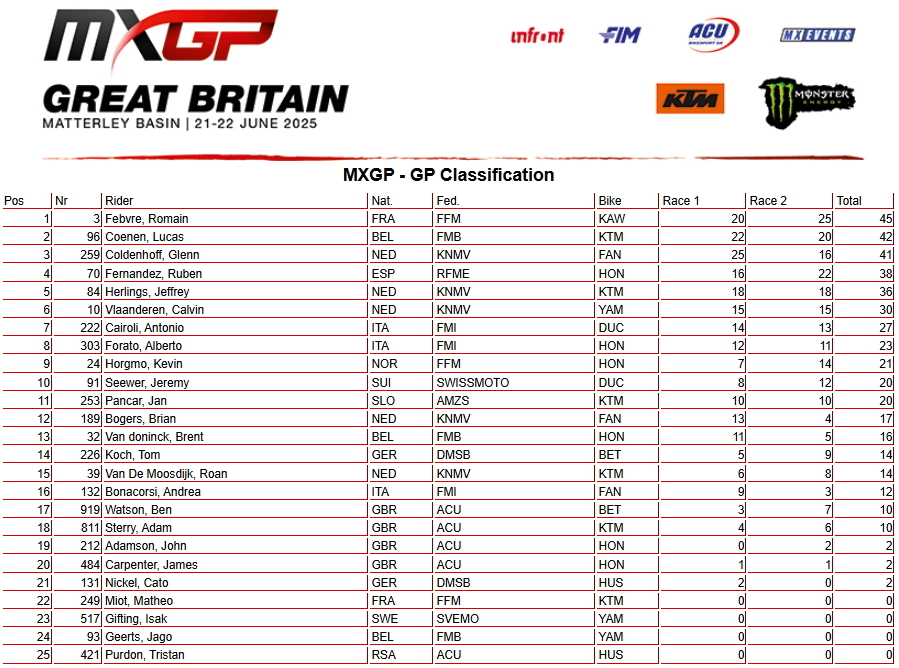 Сегодня на трассе в Маттерли Бэйсин прошли основные заезды 12-го этапа Чемпионата мира по мотокроссу 2025 года - Гран-при Великобритании.
