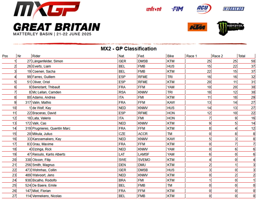 В классе МХ2 сильнейшим оказался немец Саймон Лангенфельдер, а в MXGP - француз Ромен Февр.