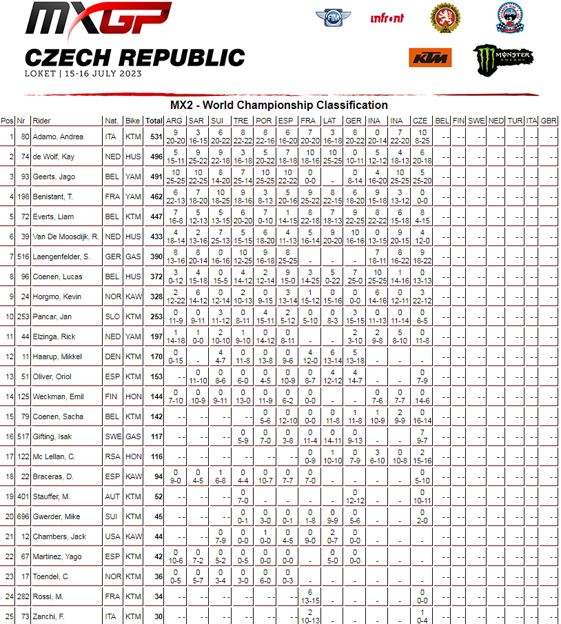 В классе МХ2 победителем стал бельгиец Яго Гиртс, а в MXGP француз Ромен Февр.
