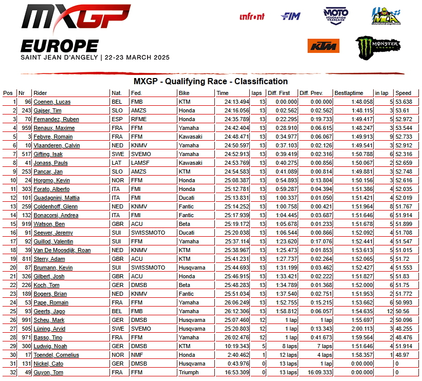 Сегодня на трассе в Saint-Jean-d'Angély (Франция) прошли квалификационные заезды третьего этапа Чемпионата мира по мотокроссу 2025 года - Гран-при Европы.