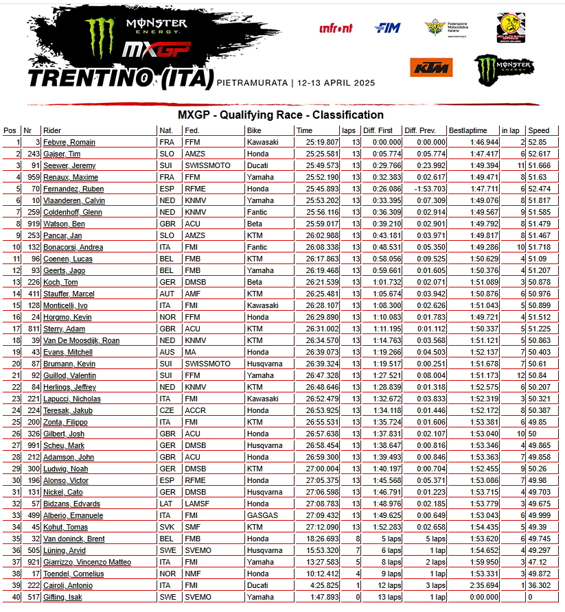 Сегодня на трассе Пьетрамурата (Италия) прошли квалификационные заезды 5-го этапа Чемпионата мира по мотокроссу 2025 года - Гран-при Трентино.