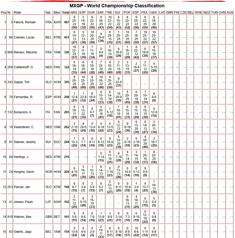 В классе MXGP свою 108-ю победу в карьере одержал голландец Джеффри Херлингс. Бельгиец Лукас Коэнен стал вторым, лидер общего зачета француз Ромен Февр.