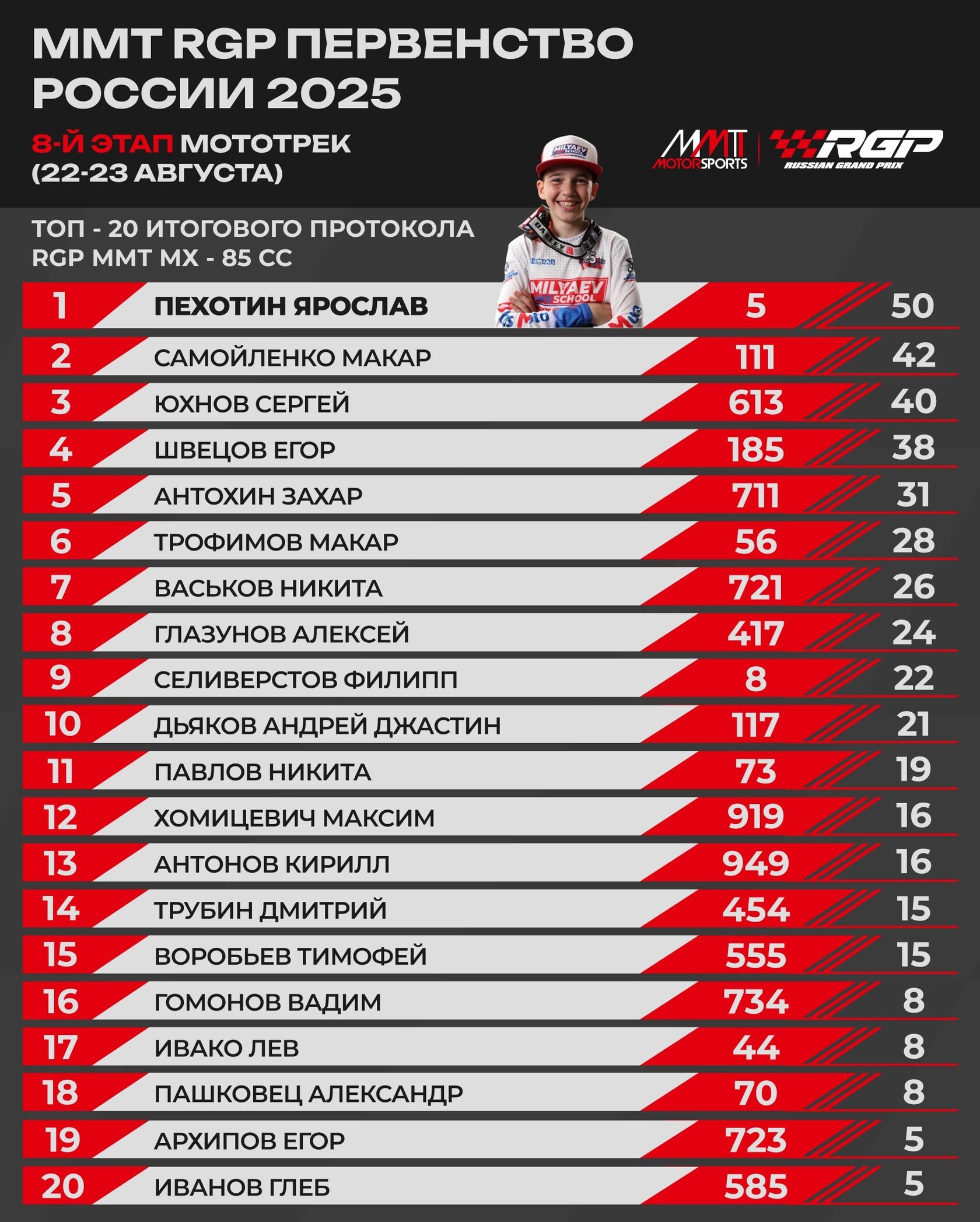 В классе МХ-85 Матвей Касьянов занял 22-е место, а у Тимофея Золотова – 44-е место.