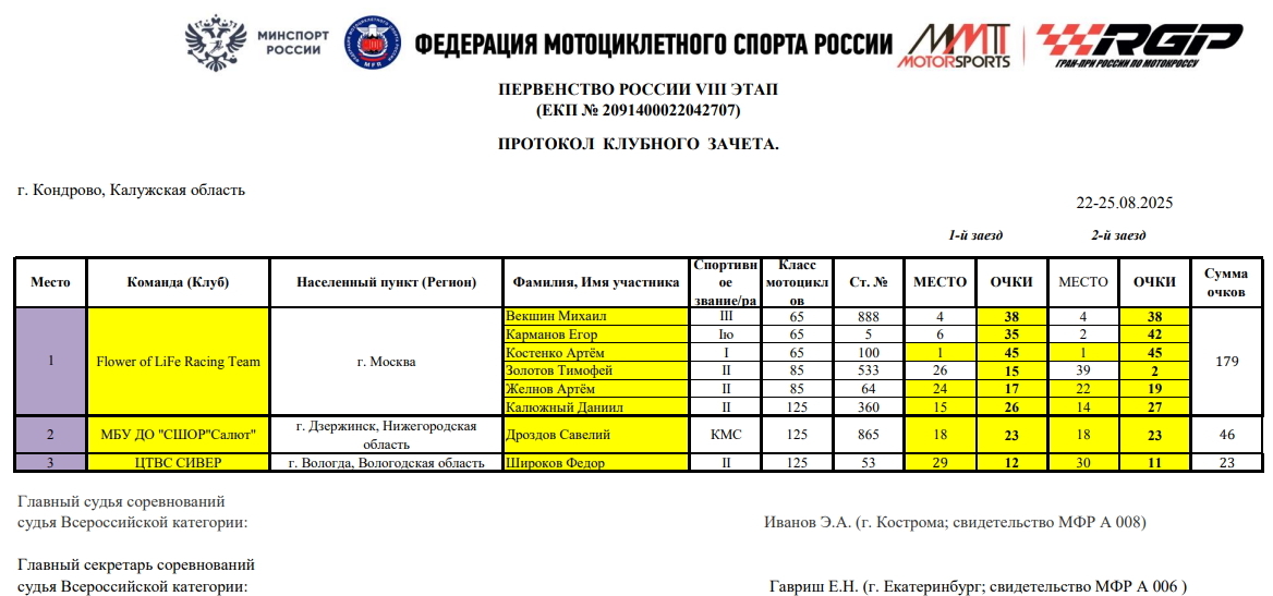 В минувшую пятницу, 22 августа в г.Кондрово (Калужская область) прошел заключительный, 8-й этап Первенства России по мотокроссу 2025 года, на котором гонщики команды «Flower of Life Racing Team» Александра Солтановича показали высокие результаты и завоевали чемпионские титулы.