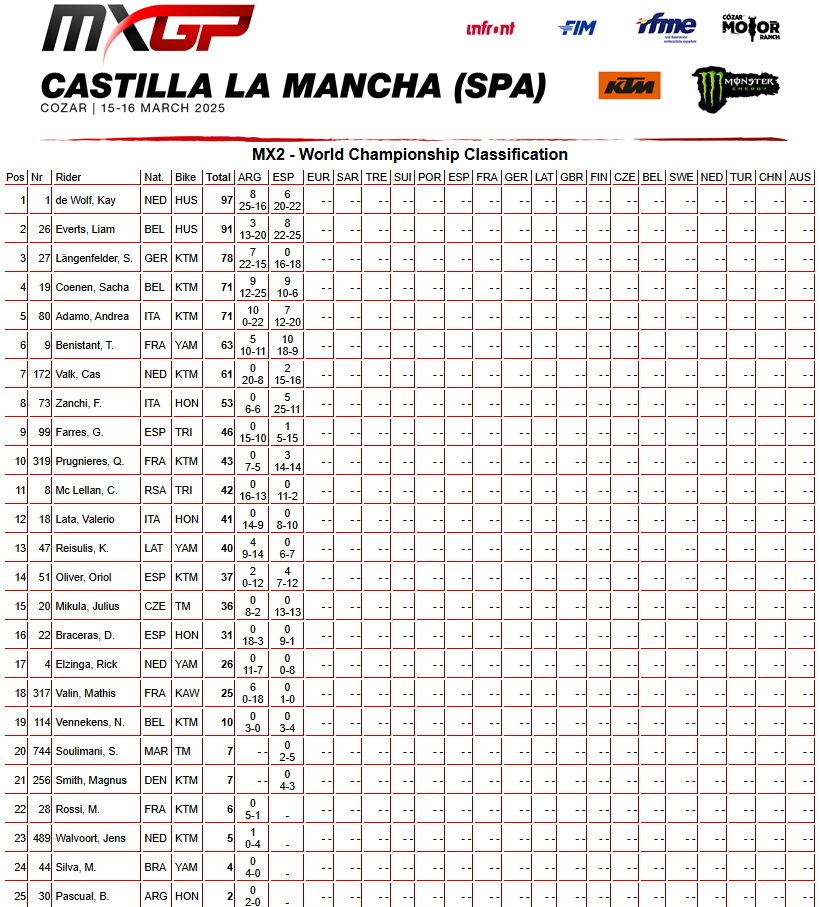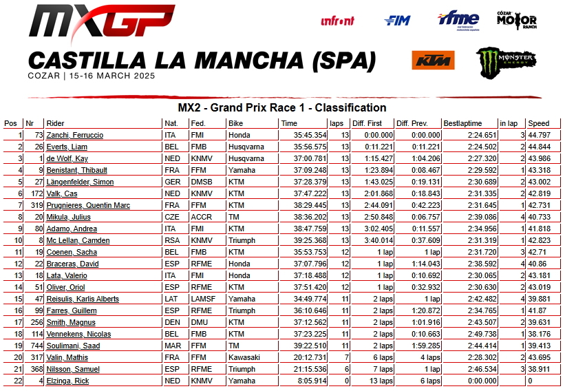 Результаты Гран-при Кастилия-Ла-Манча (Испании) - класс МХ2: