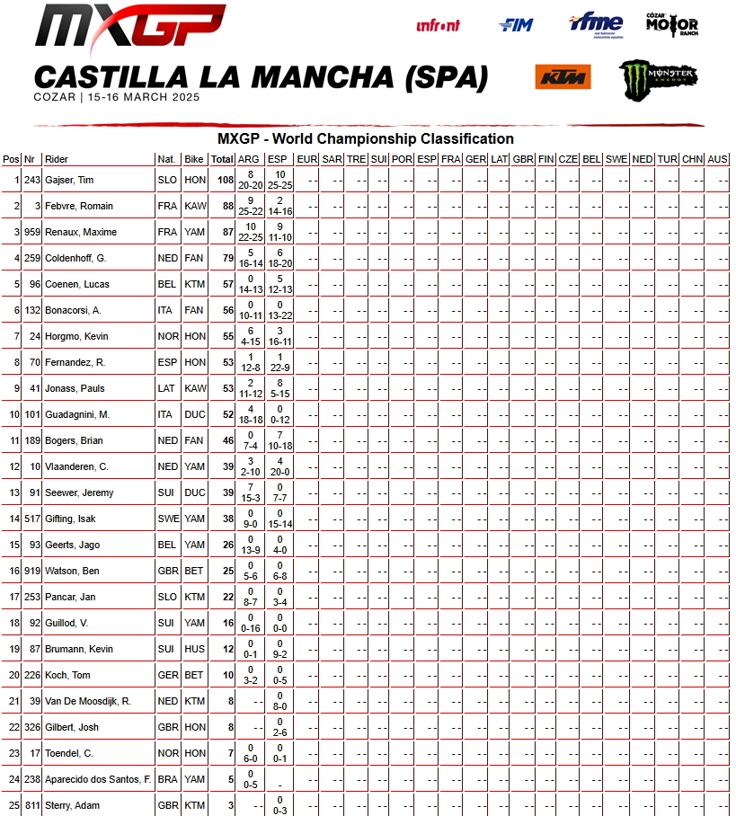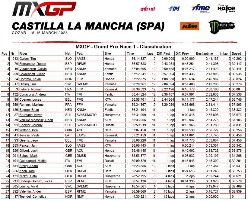 Сегодня в Козаре (Испания) прошли основные заезды второго этапа Чемпионата мира по мотокроссу 2025 года - Гран-при Кастилия-Ла-Манча, которое прошло в сложных грязевых условиях из-за дождя.
