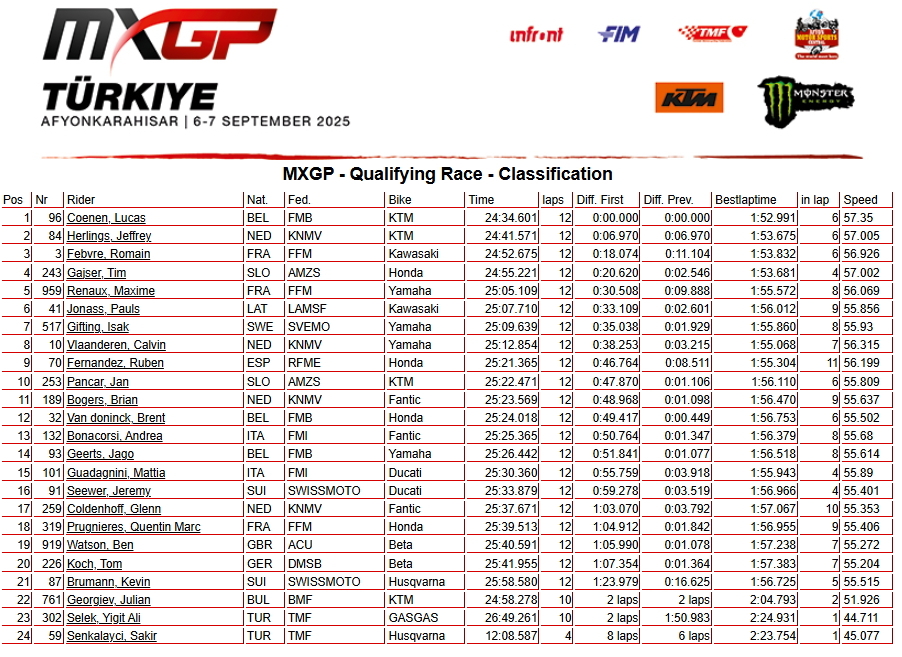 Сегодня на трассе в Афьонкарахисар прошли квалификационные заезды 18-го этапа Чемпионата мира по мотокроссу 2025 года - Гран-при Турции.