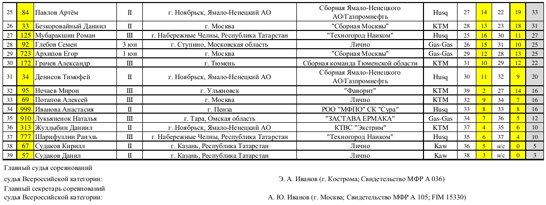 Результаты Первенства России 6-го этапа в классах 50сс, 65М и 65Ю:
