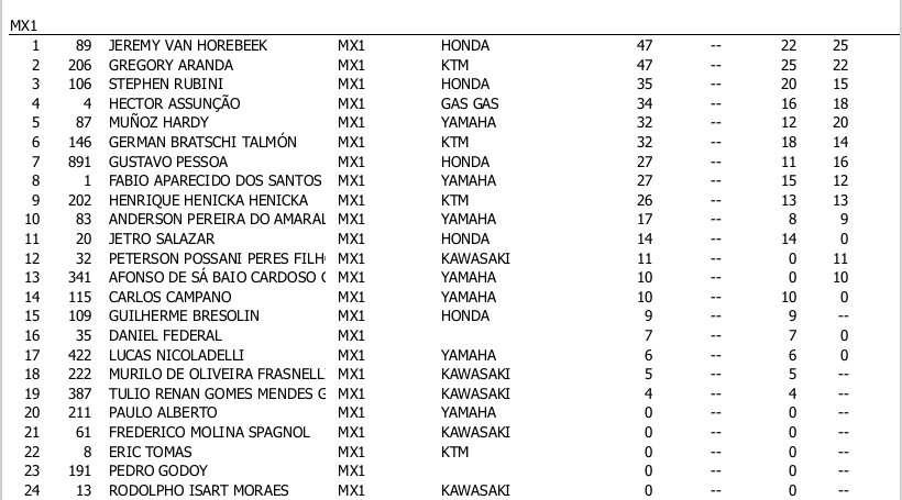 Спустя год после того, как титул ускользнул от него из-за травмы, и уступив всего 12 очков Фабио Сантосу, Стивен Рубини добился своего. Теперь, живя в Бразилии, французский гонщик завоевал свой первый национальный титул в классе MX1, вписав своё имя в список победителей бразильского чемпионата по мотокроссу.