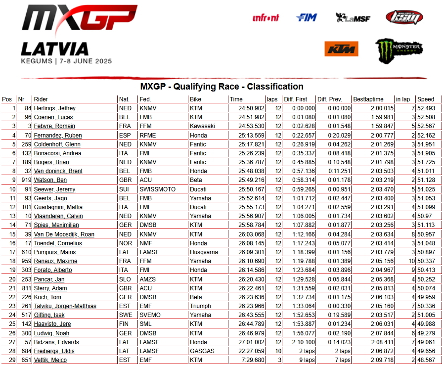 Сегодня на трассе в Кегумсе прошли квалификационные заезды11-го этапа Чемпионата мира по мотокроссу 2025 года - Гран-при Латвии.