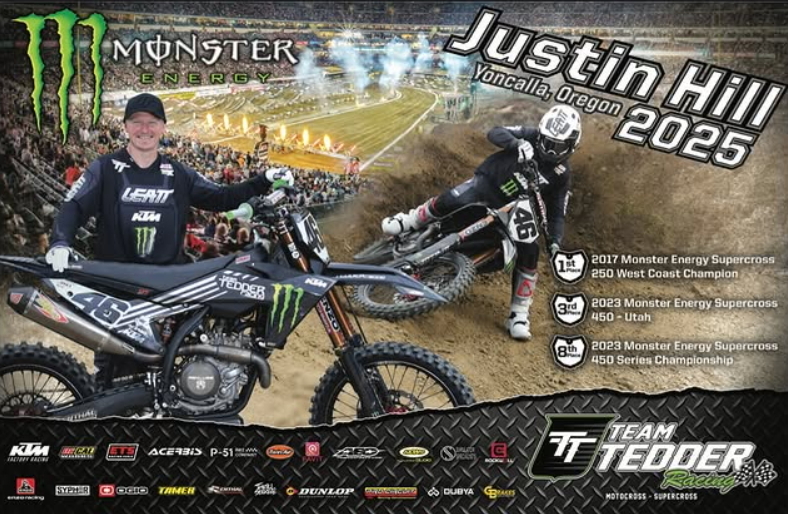 Джастин Хилл продлил контракт с командой Tedder KTM на 2025 год. Он римет участие в своем 11-м сезоне по суперкроссу, а также отметит в новом году свое 30-летие.