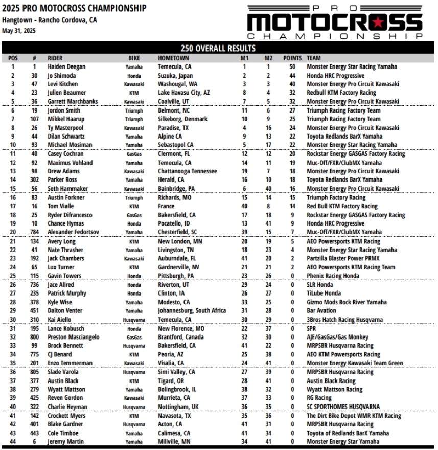 В минувшую субботу, 31 мая на трассе Хангтаун в Сакраменто (Калифорния) прошел второй этап серии АМА Мотокросс 2025 года.