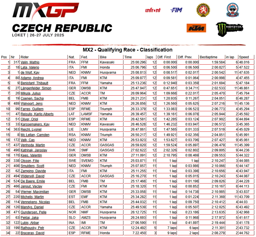 В классе МХ2 сильнейшим оказался Матис Валин, а в MXGP - Ромен Февр.