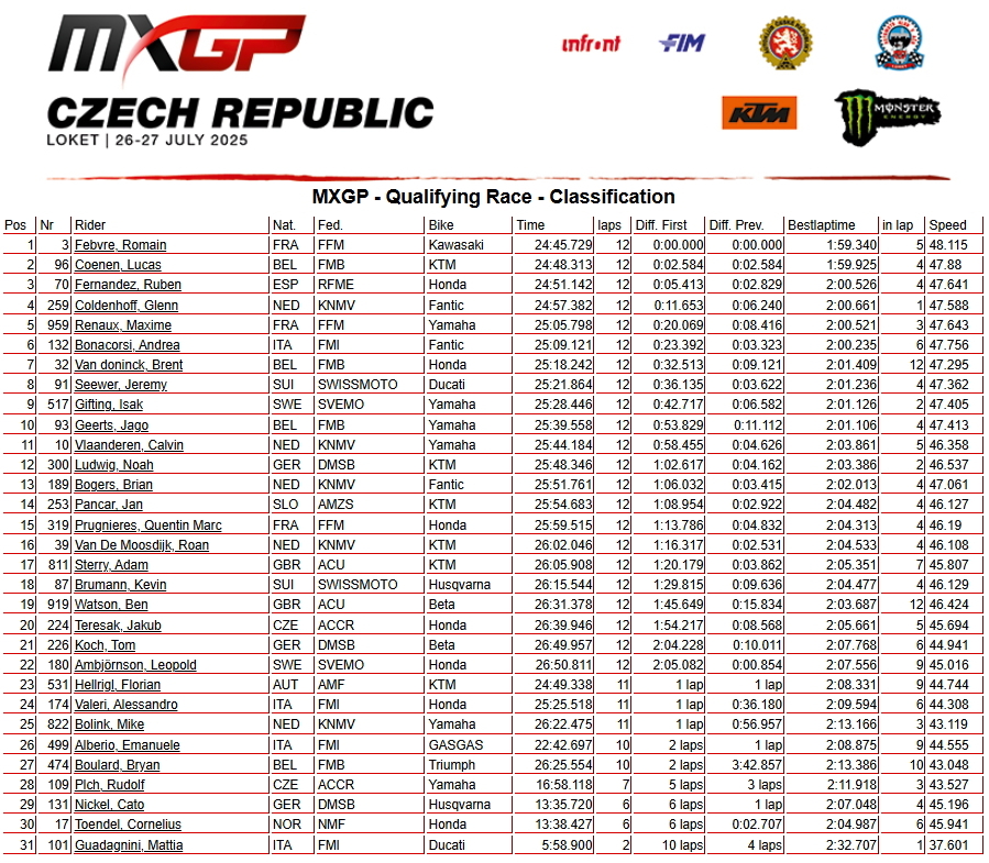 Сегодня на трассе в Локет прошли квалификационные заезды 14-го этапа Чемпионата мира по мотокроссу 2025 года - Гран-при Чехии, на которых первенствовали французские гонщики.