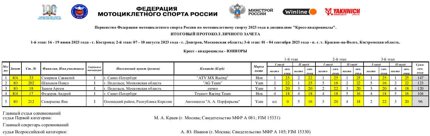 В минувшие выходные в пгт Красное-на-Волге Костромской области на трассе мотокросса Центра развития мотоциклетного спорта прошел заключительный, 3-й этап Чемпионата России по квадрокроссу 2023 года.