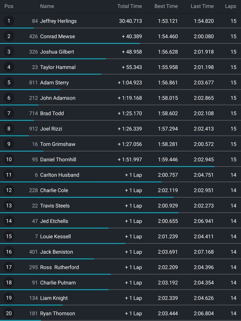 Джеффри Херлингс: «Субботний дождь помог с траекторией. Трасса действительно хорошая, удалось сделать ещё один холшот. Скорость, с которой я ехал, сравнима с моей скоростью на Гран-при, и эта скорость, достойна подиума».