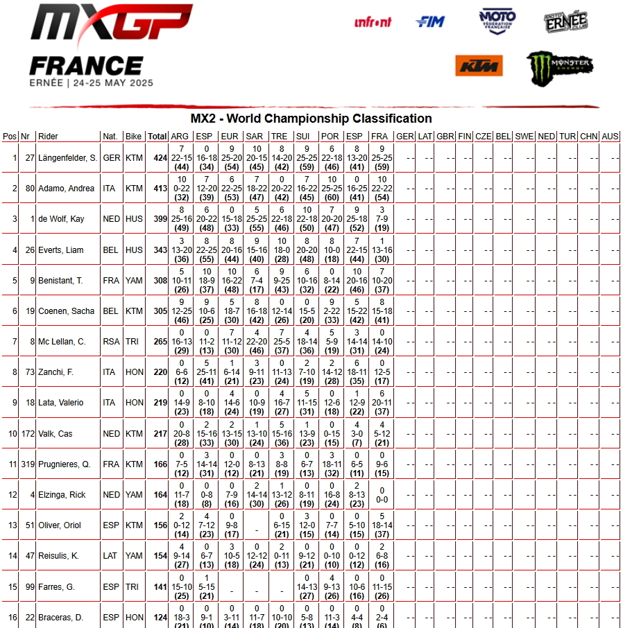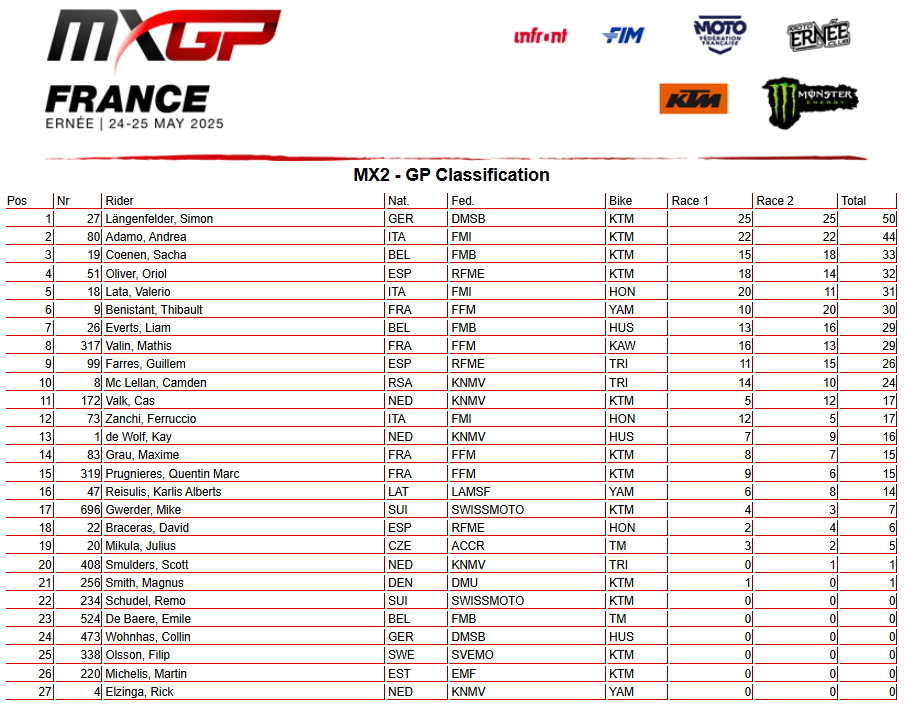 Абсолютным победителем в классе МХ2 стал немец Саймон Лагенфельдер. Второе место у итальянца Андреа Адамо, третье место у бельгийца Саши Коэнена.