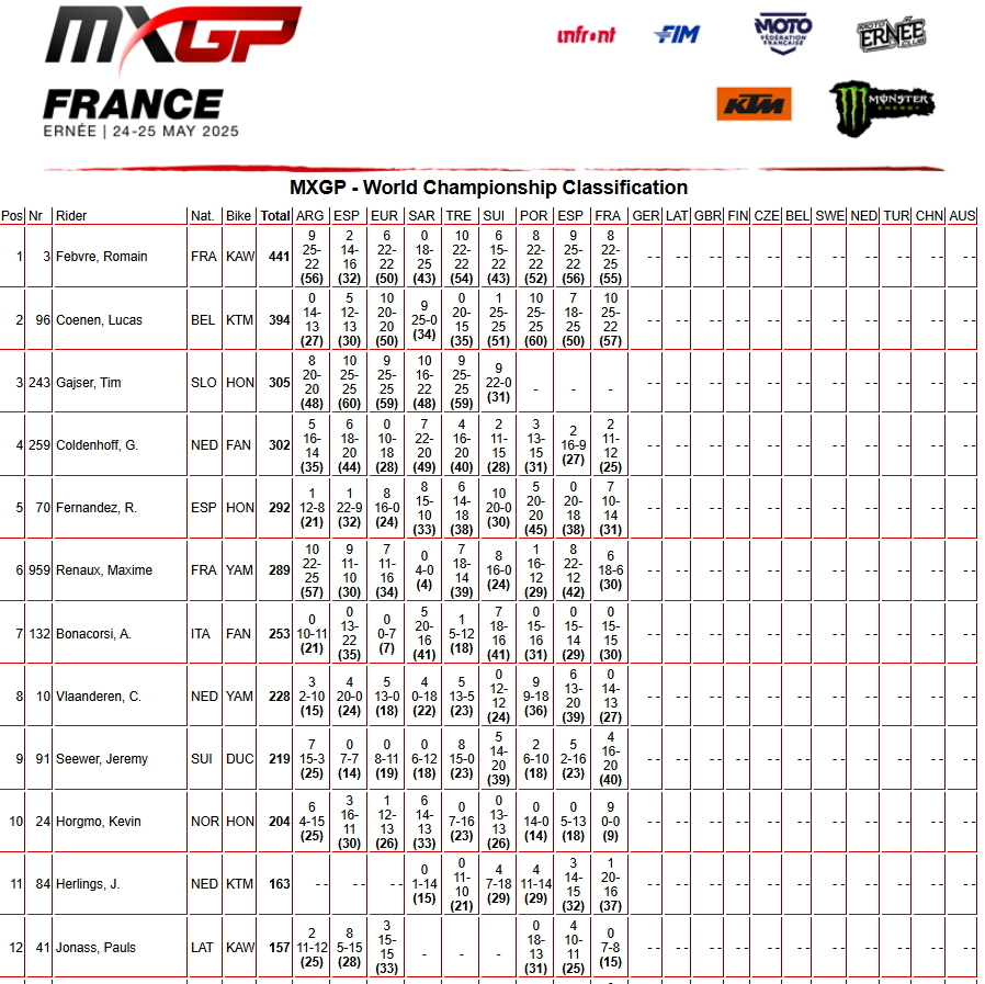 Сегодня, 25 мая на трассе в Эрни прошли основные заезды 9-го этапа Чемпионата мира по мотокроссу 2025 года - Гран-при Франции.