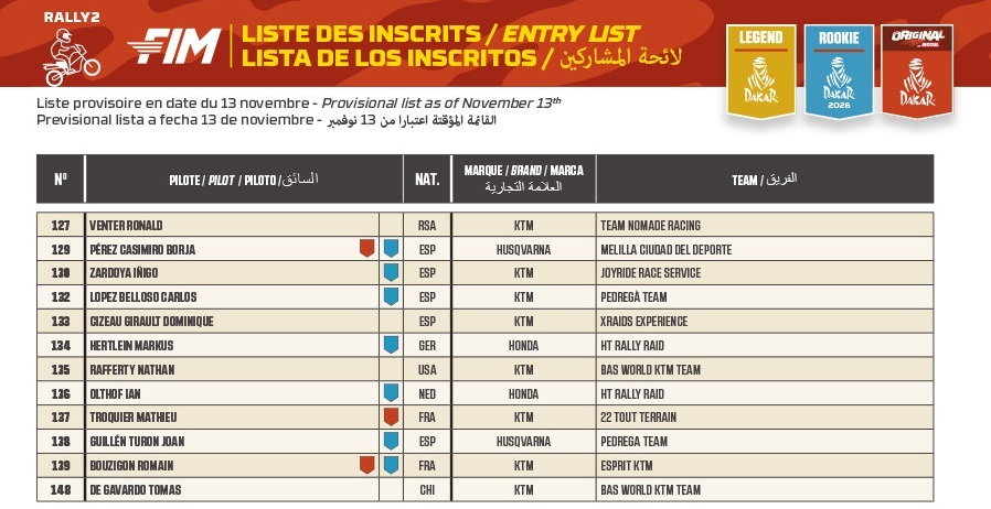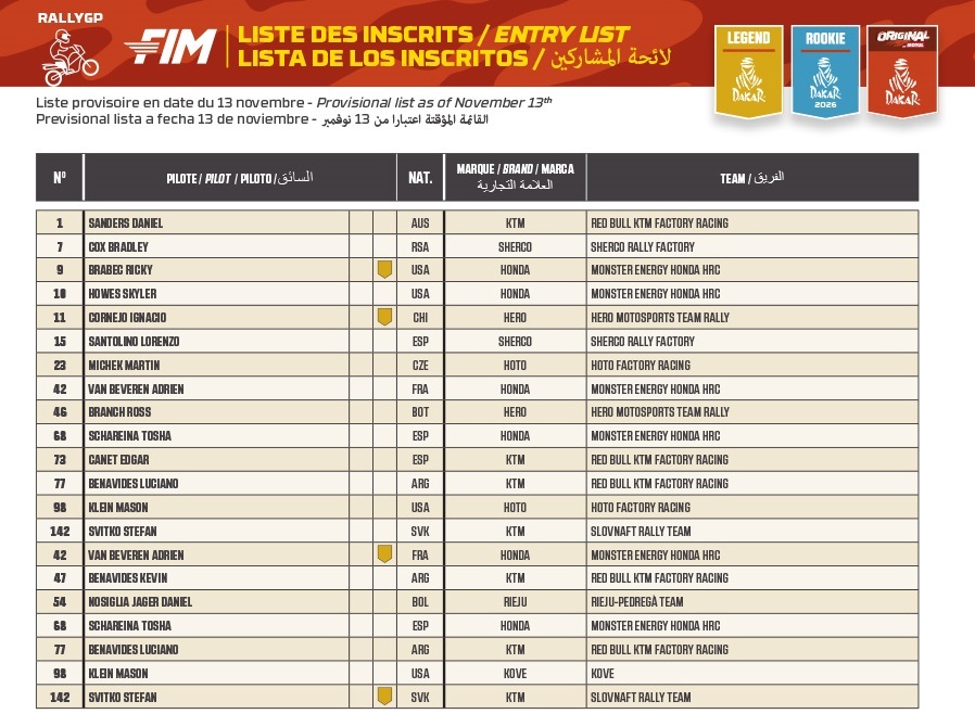 На «Дакаре 2026» примут участие 325 транспортных средств, в том числе 118 мотоциклов и семь электромотоциклов в категории «Mission 1000» — на специальной укороченной трассе, предназначенной для прототипов альтернативных источников энергии, включая два Stark Vargs.