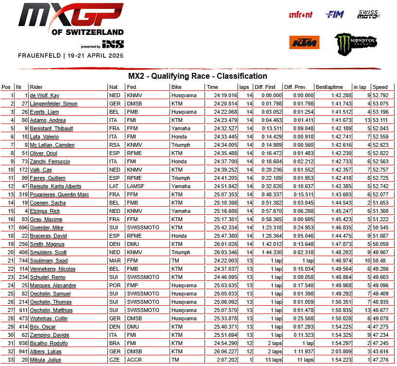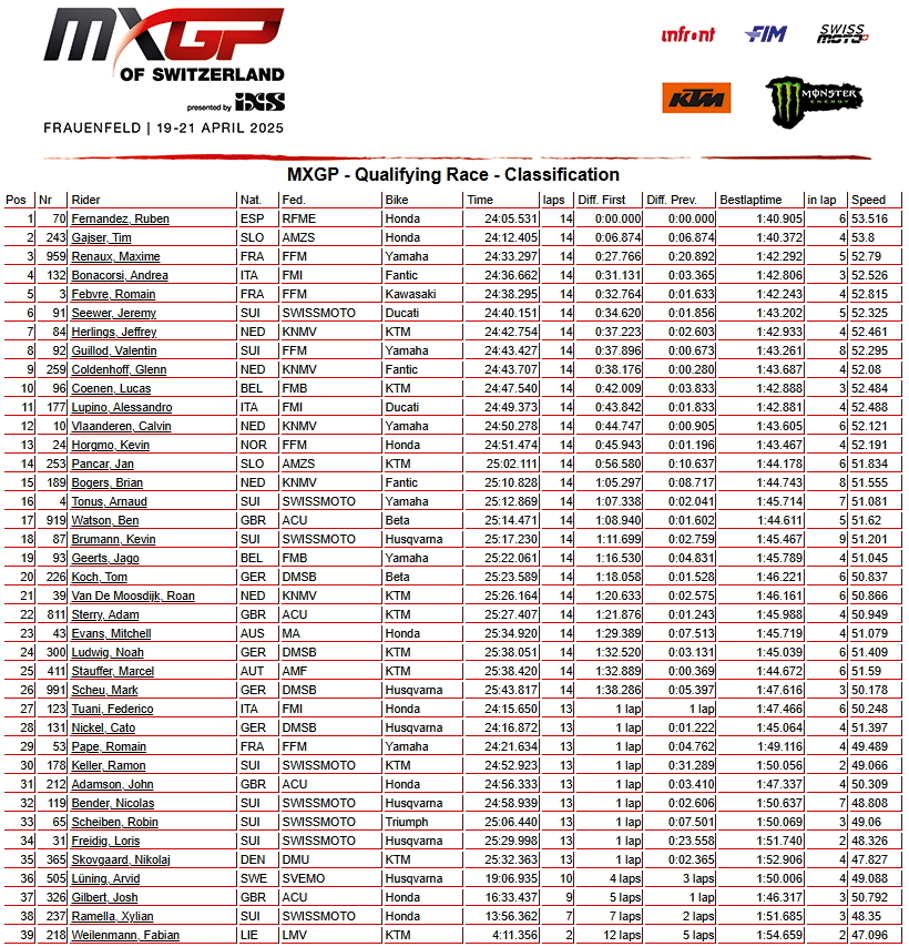 Сегодня на трассе Фрауэнфельд прошли квалификационные заезды 6-го этапа Чемпионата мира по мотокроссу 2025 года - Гран-при Швейцарии.