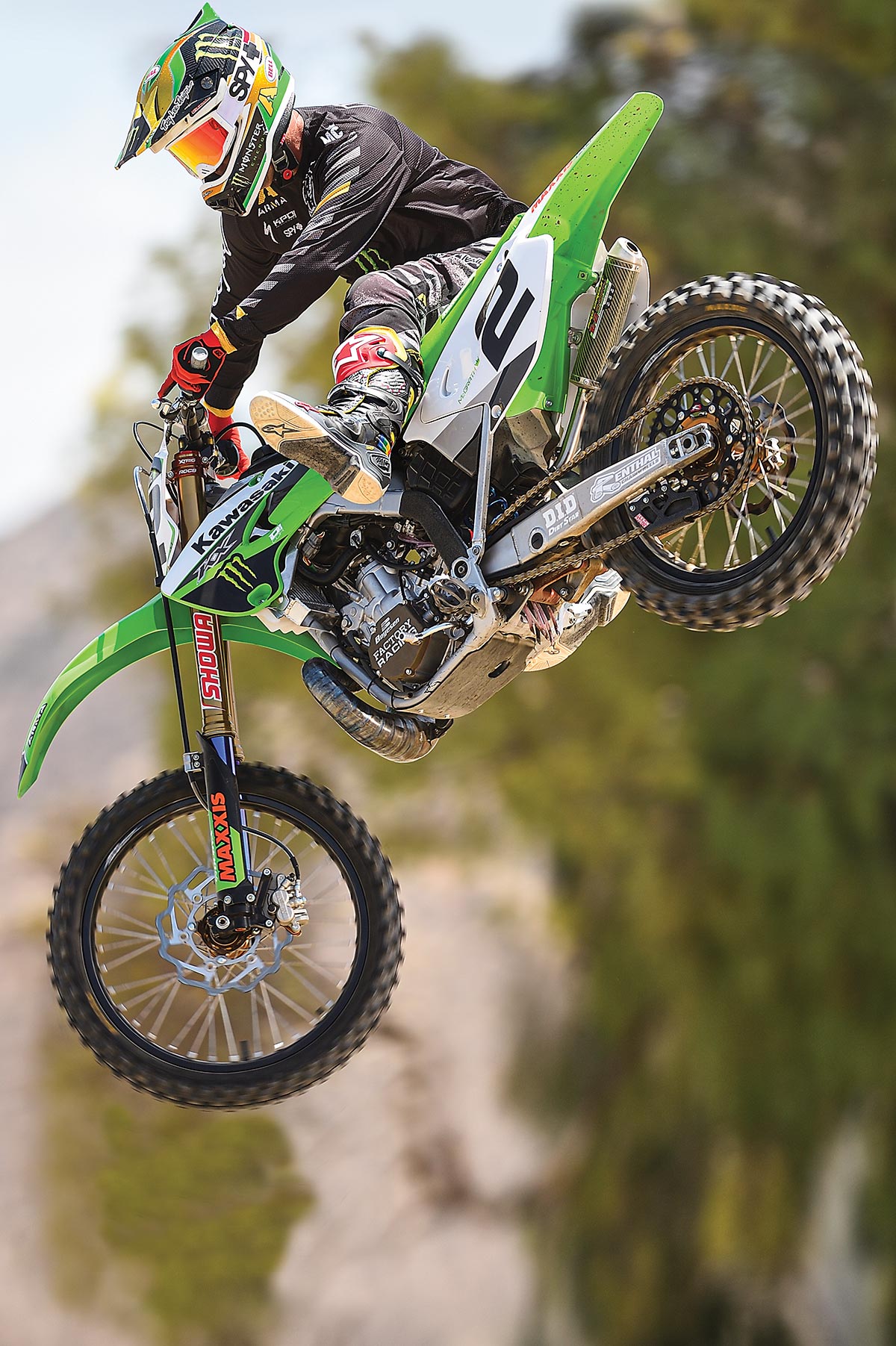 Настоящие обновления коснулись рамы и подвески. Одна хорошая вещь в Kawasaki заключается в том, что приличное количество деталей от новых четырехтактных моделей 250/450сс можно довольно легко установить на двухтактные модели 125/250сс последнего поколения. МакГрат фактически перенес всю переднюю часть на КХ250 со своего подготовленного к гонкам Kawasaki KX450 2023 года, на котором он выступал в гонке Mammoth Mountain MX в классе 50+.